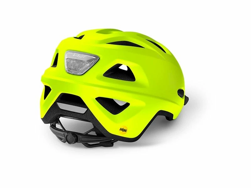 Urban udseende med funktionelt design. MET Mobilite MIPS er usædvanlig sikker og spækket med alle de funktioner, der er nødvendige i byen. Fidlock magnetisk spænde, anti-insekt net, brugerdefineret LED-lys, som klikker ind og ud af den bagerste udluftning.